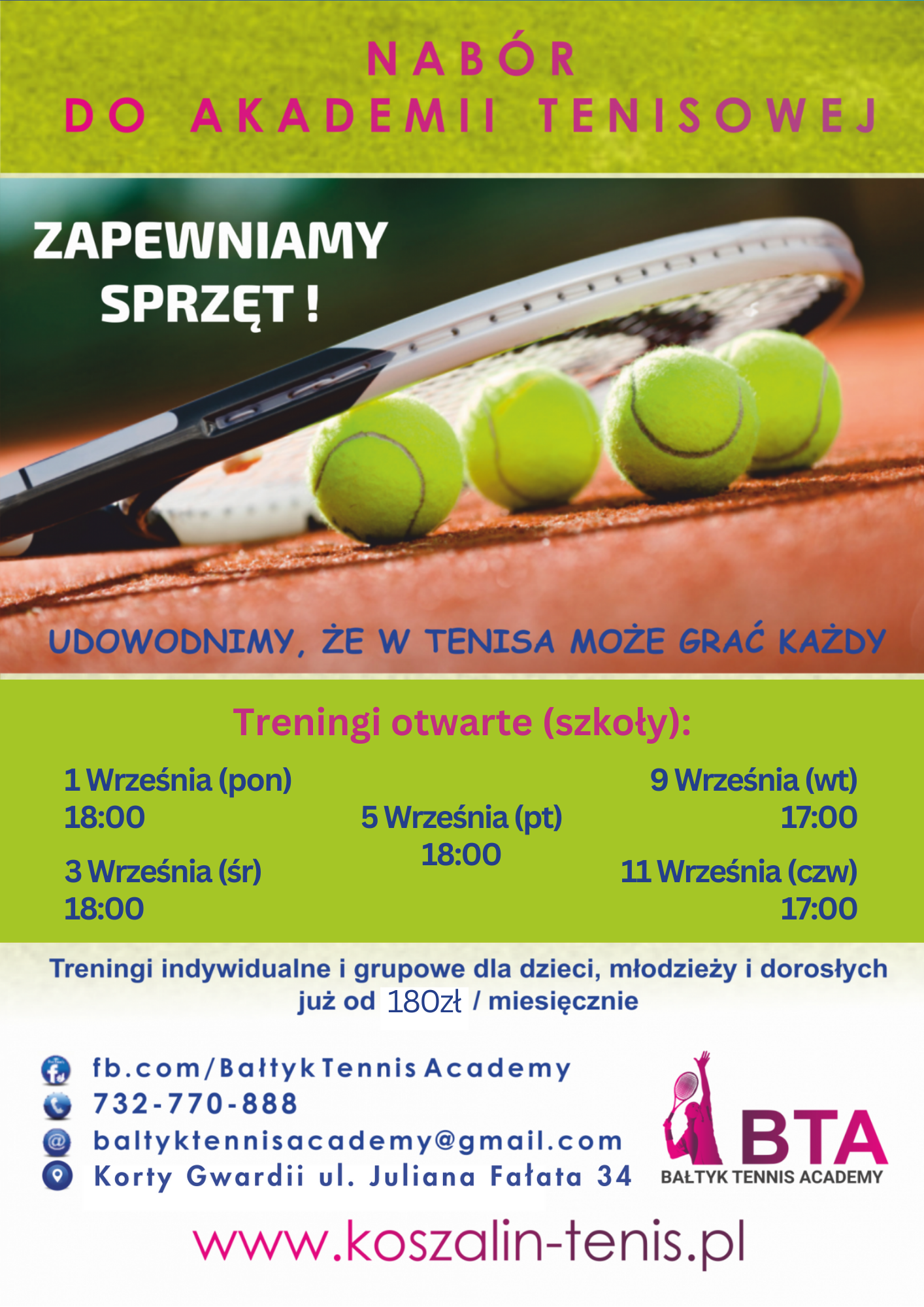 Bałtyk Tennis Academy to profesjonalna szkoła tenisa założona z inicjatywy byłych zawodników i pasjonatów, którzy zdobywali doświadczenie zawodnicze i trenerskie na arenie krajowej oraz międzynarodowej.